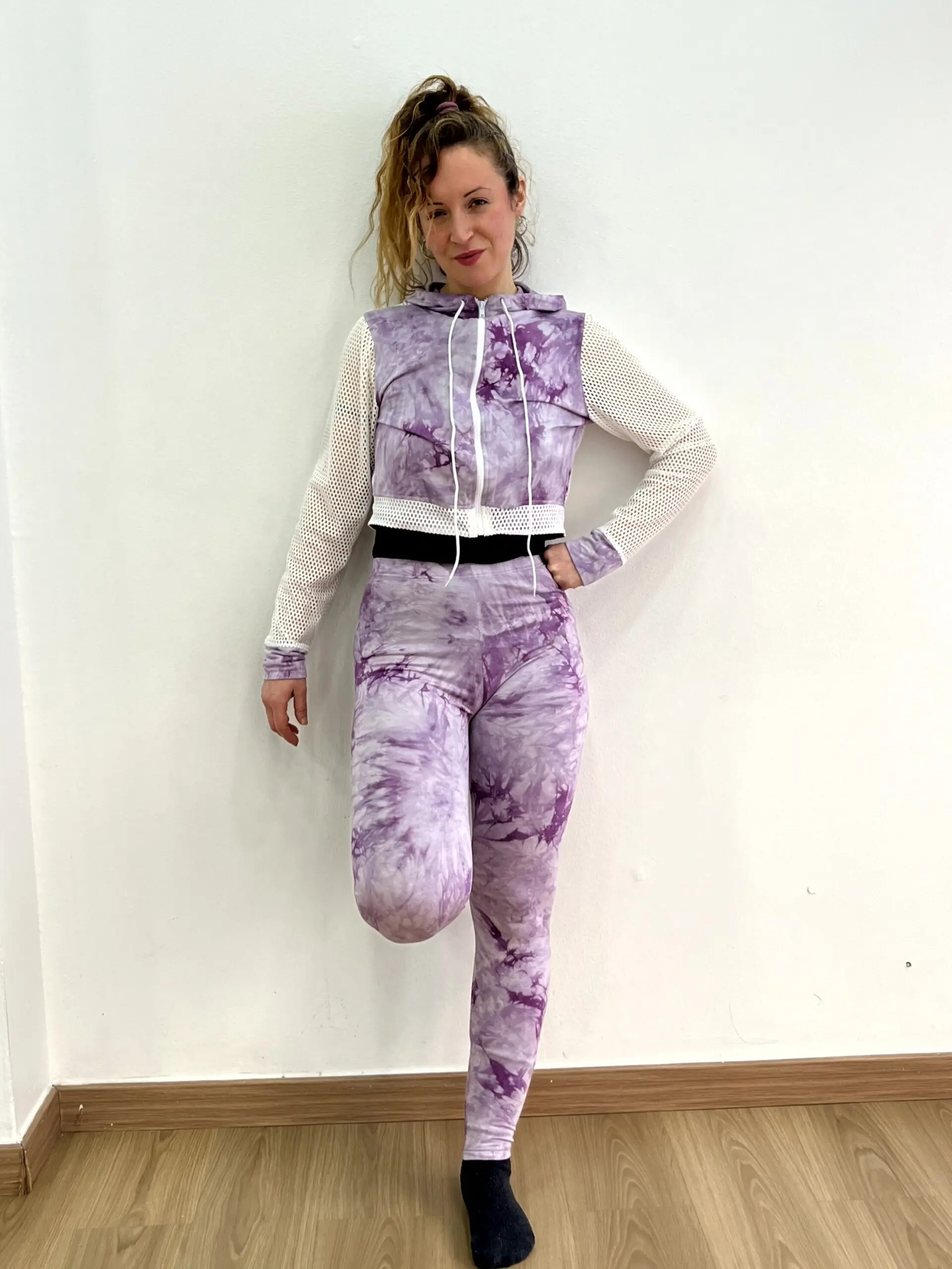 Conjunto sudadera red y mallas largas combinación tie dye LILA